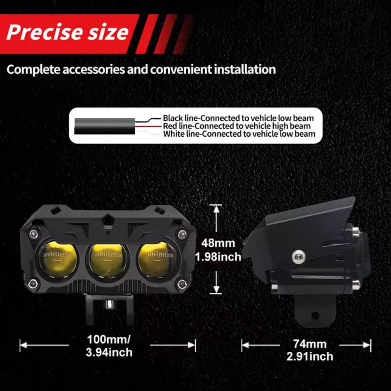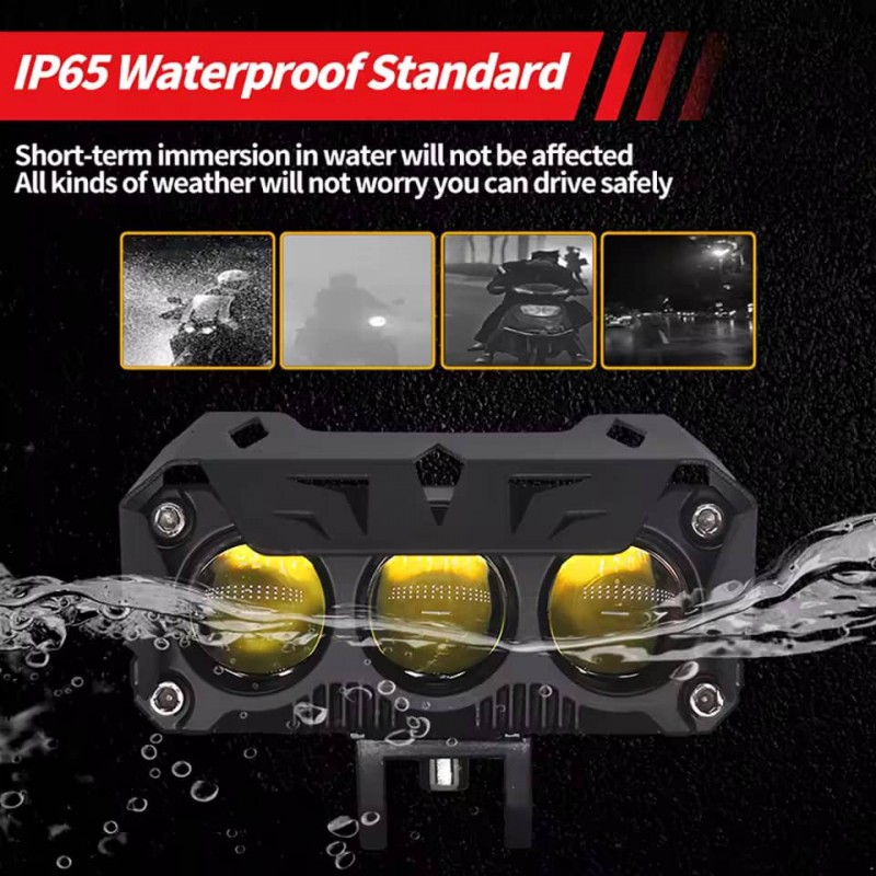 كشافات خارجية للدراجات النارية بتصميم قوي ومتين، تمنحك رؤية فائقة الوضوح في الليل والظروف الصعبة. مثالية لعشاق المغامرة والقيادة الآمنة، وتأتي بثلاث عدسات ضوئية لكل وحدة لإضاءة مركّزة وموزعة.