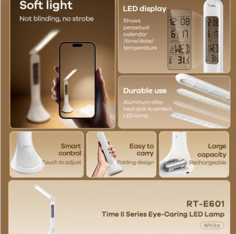 مصباح LED للعناية بالعين من سلسلة REMAX RT-E601 Time II (سعة 1200 مللي أمبير في الساعة)