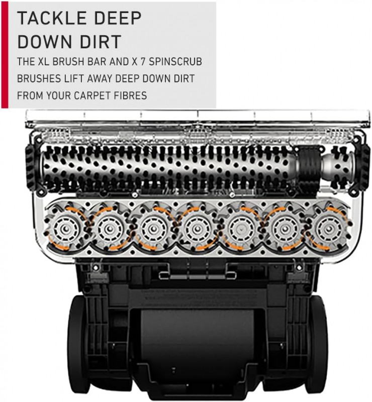 تنظف السجاد بكفاءة تفوق المكنسة الكهربائية عالية الأداء بـ 5 مرات. فرشاة XL الكبيرة والتقنية الحاصلة على براءة اختراع تزيل الأوساخ العميقة من ألياف السجاد. - إزالة الأوساخ المتغلغلة بفعالية