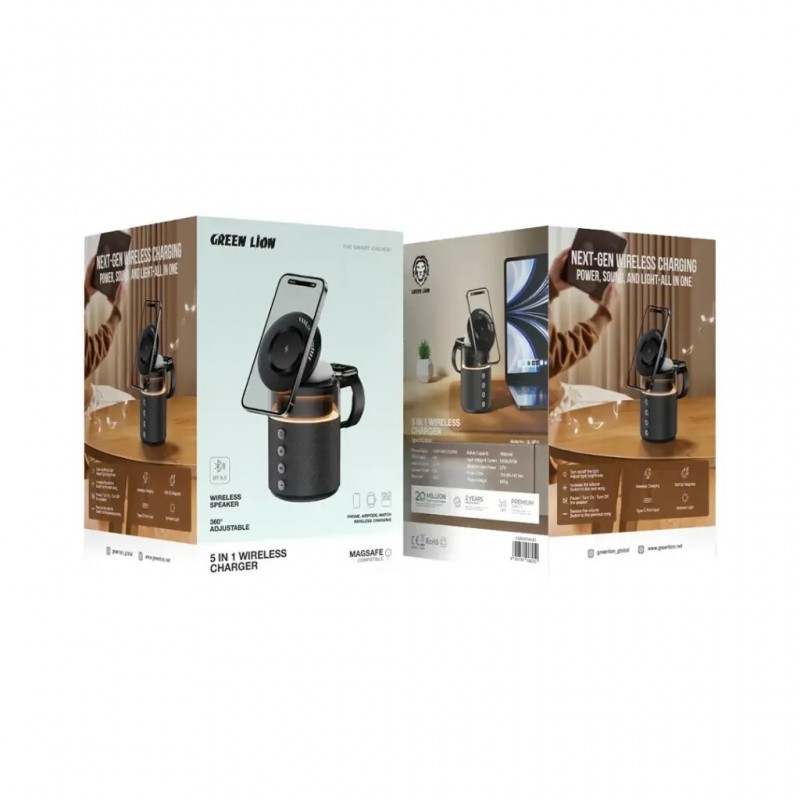 🔋 شاحن Green Lion اللاسلكي 5 في 1 – قوة متعددة في تصميم واحد أنيق!