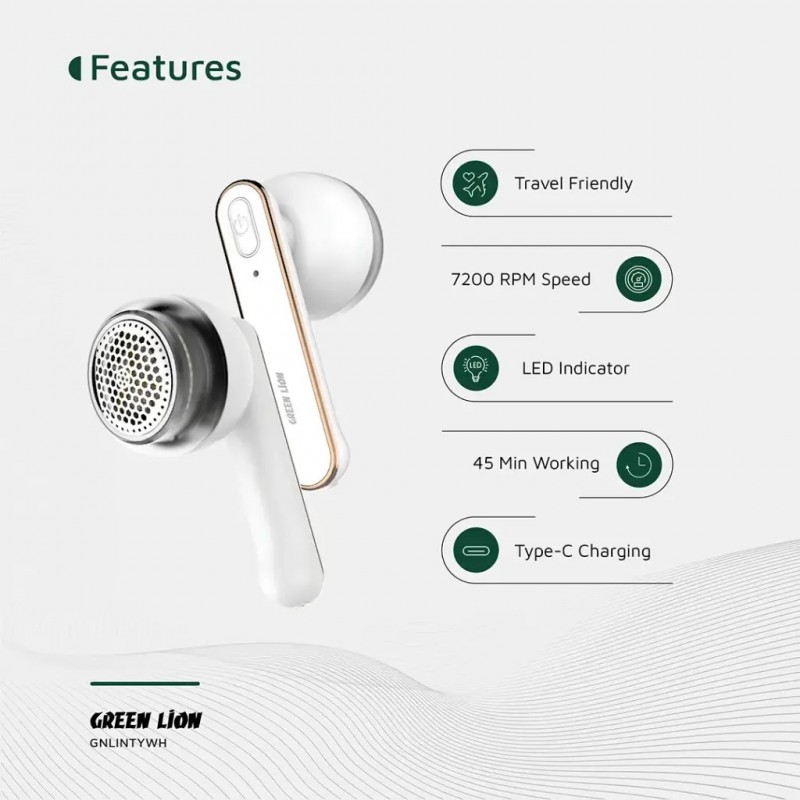✨ ودّع الوبر والزوائد على ملابسك بكل سهولة مع جهاز Green Lion Lint Y الأبيض! ✨