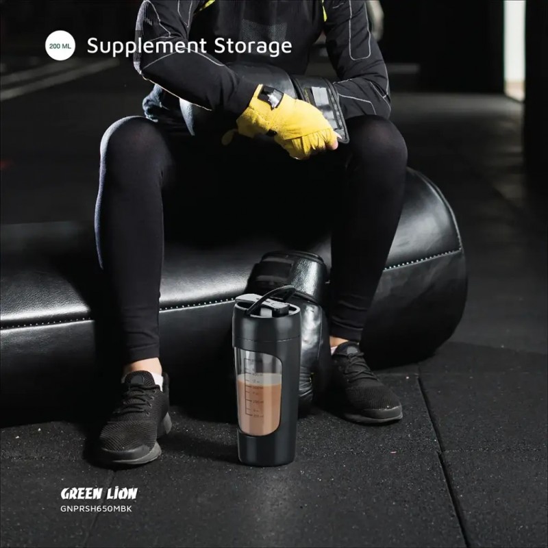 خلاط البروتين المحمول من Green Lion هو الحل المثالي لك! بسعة 650 مل وتصميم أنيق ومتين من مواد Tritan وABS وPP الآمنة، يمنحك هذا الجهاز أداءً قويًا وسهل الاستخدام أينما كنت.