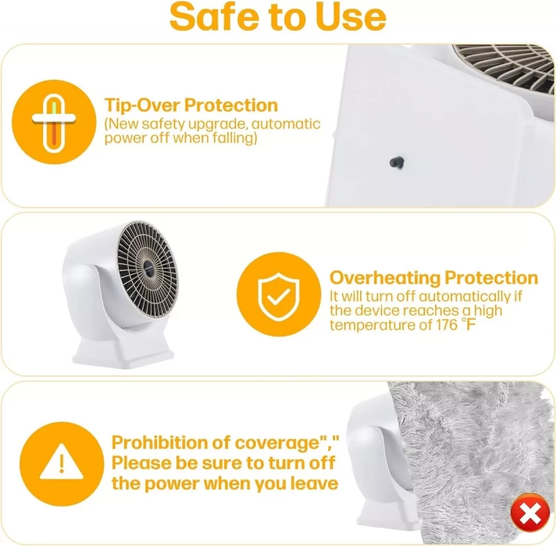 تدفئة سريعة وفعالة سخان باستطاعة 800 واط يسخن خلال ثواني ⚡
