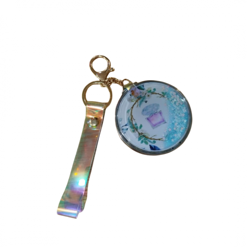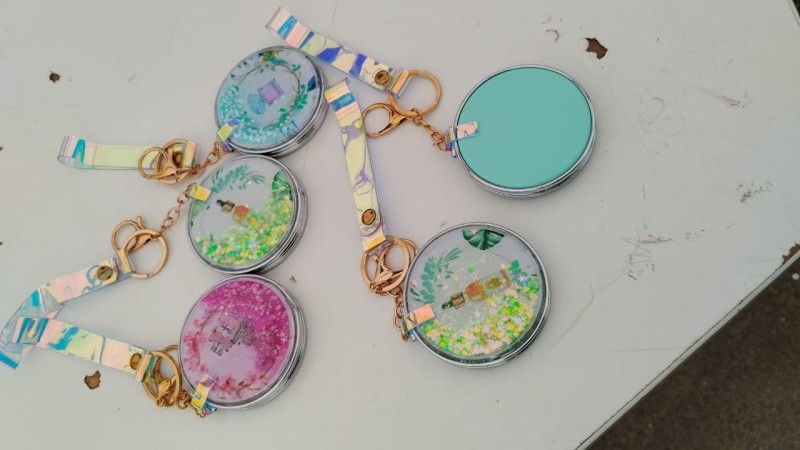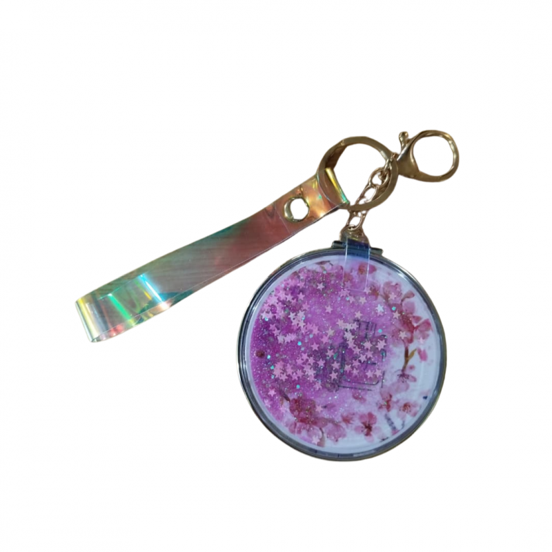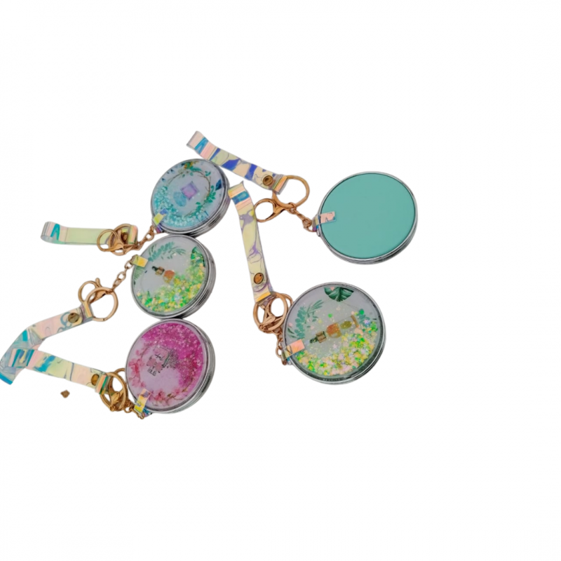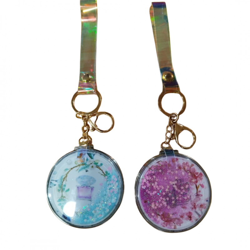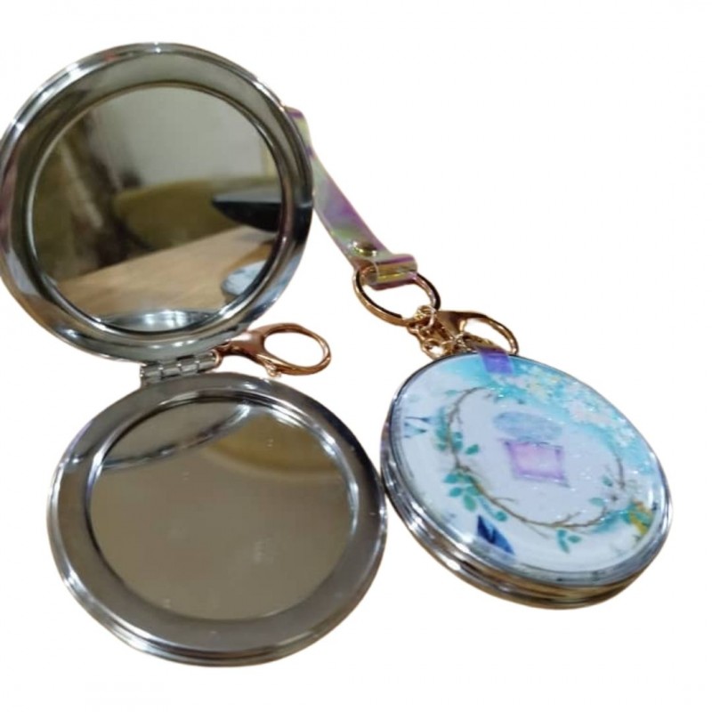 مرآة صغيرة مزدوجة قابلة للفتح مرفقة بسلسلة مفاتيح
