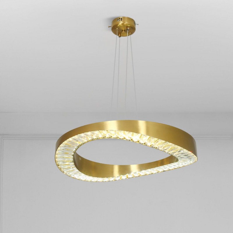 ثريا ليد كريستال دائرية منحنية بطريقة راقية، بتضوي بثلاث ألوان مختلفة ✨💡