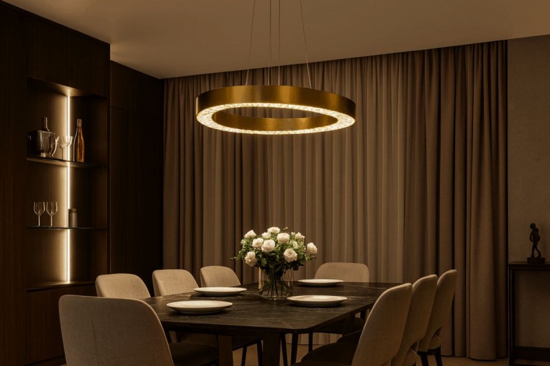 #تريا_ذهبية #ديكور_راقي #إضاءة_LED #بيت_فاخر #لمسة_كريستال