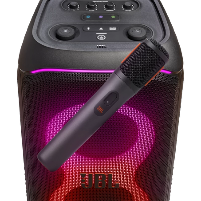 ما عليك سوى توصيلها بأي جهاز JBL PartyBox أو استخدام الدونجل للاتصال اللاسلكي ودع صوتك مسموعًا 🔊✨