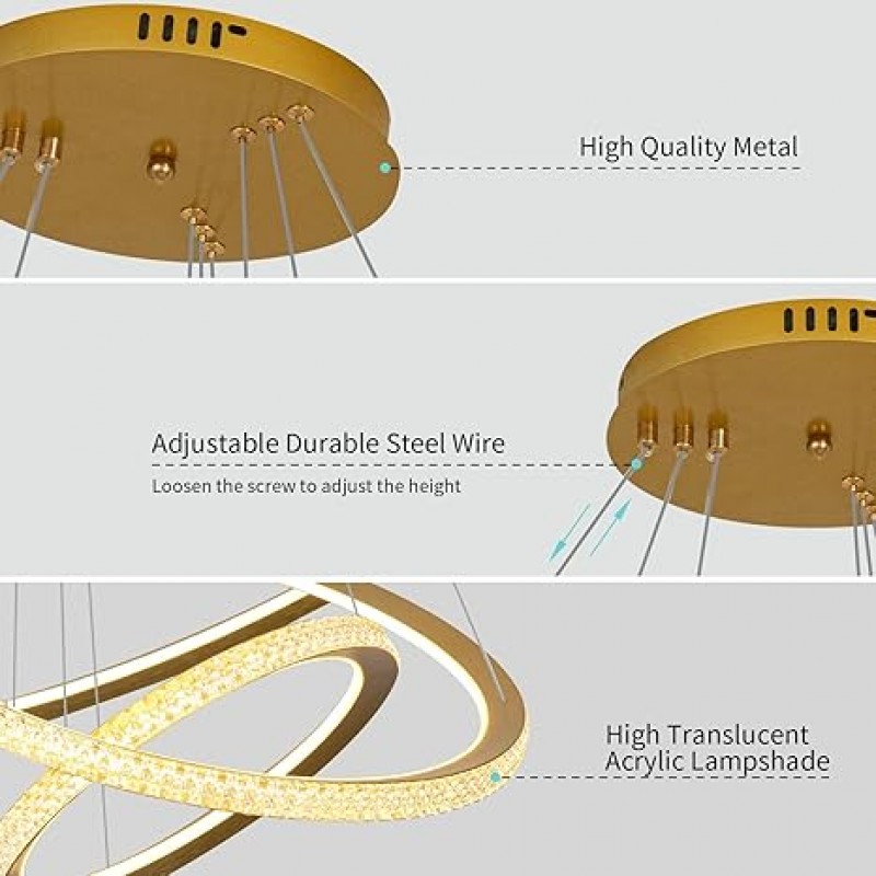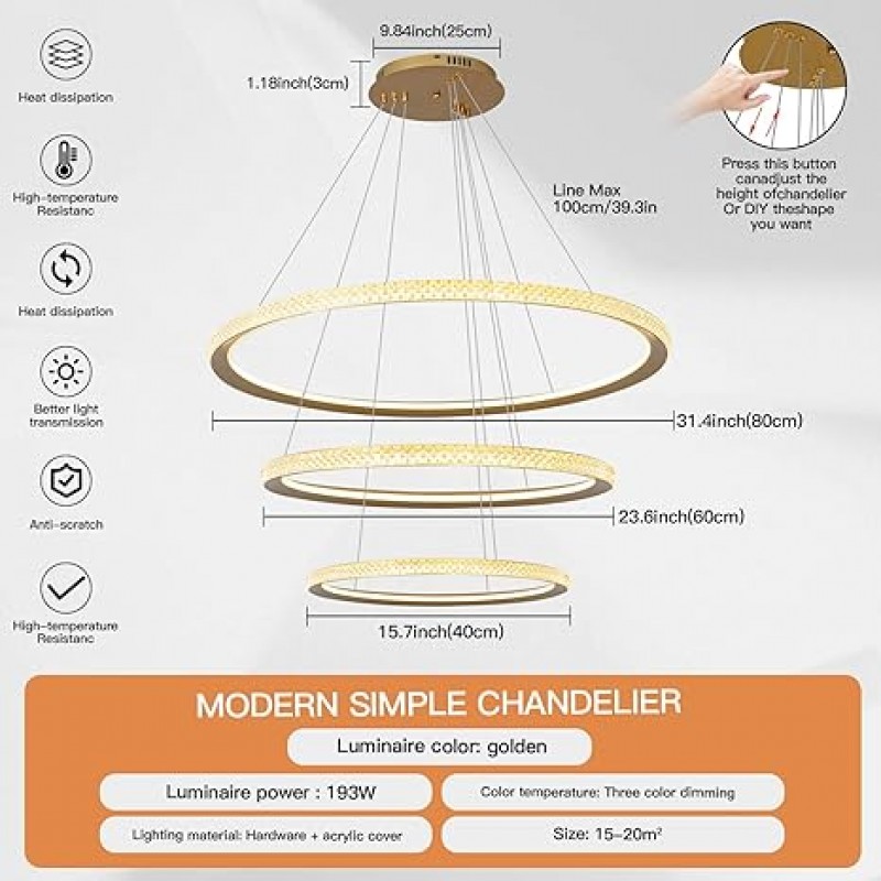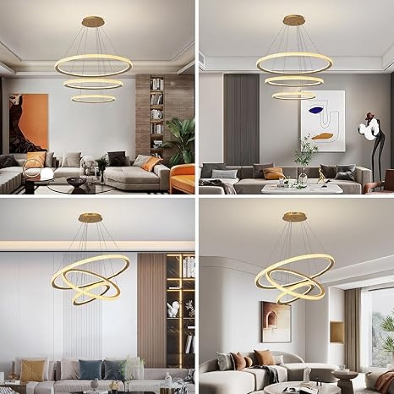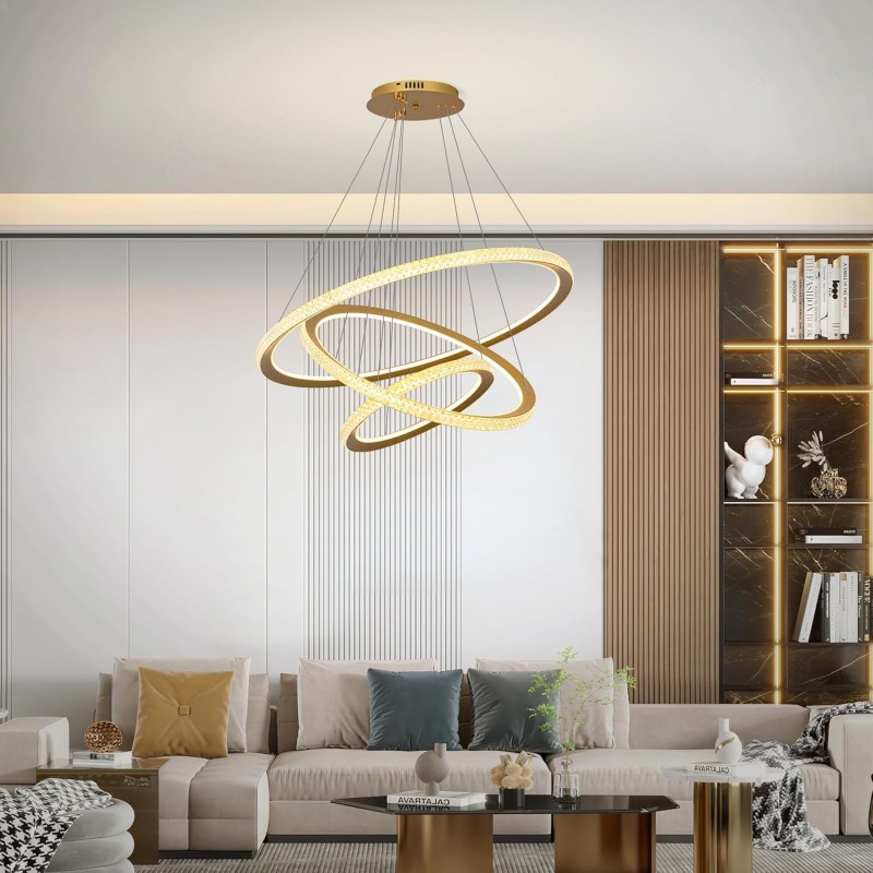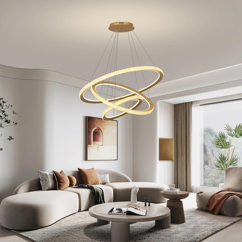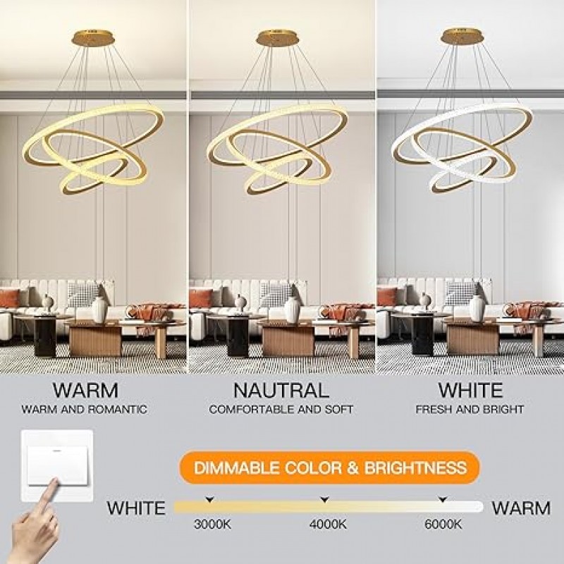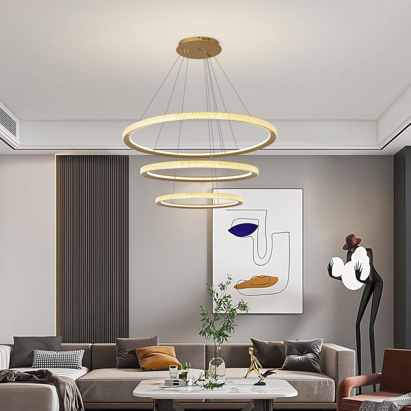 ✨ حلقات متداخلة بإضاءة ليد متغيرة (دافئ – محايد – أبيض)