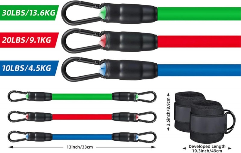 - 3 مستويات مقاومة ملوّنة لتناسب جميع التمارين.