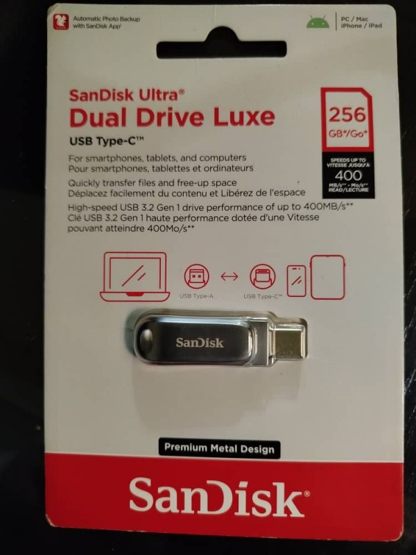 فلاشة تايب سي sandisk 256G USB 3.1 -TYPE-C Luxe