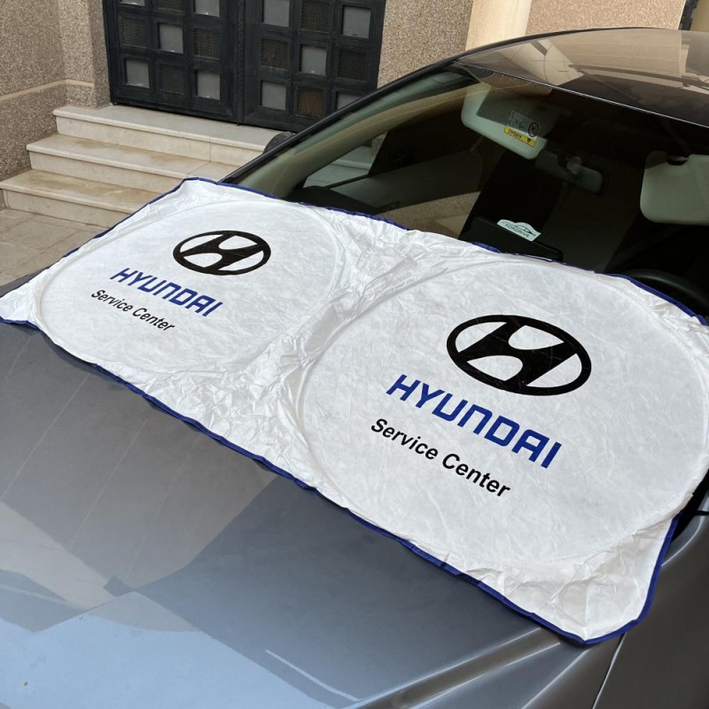 ستارة عملية بتصميم احترافي تحمل شعار HYUNDAI، تساعدك على حماية داخلية السيارة من حرارة الشمس وتحافظ على برودة المقصورة، خصوصًا في الأيام الحارة. مصنوعة من خامة عاكسة للحرارة وسهلة الطي والتخزين.