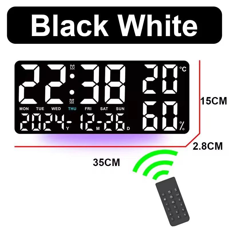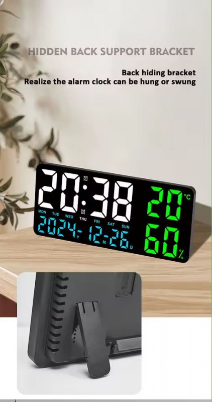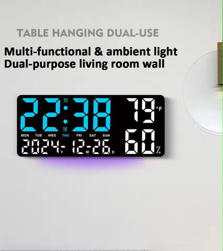 ساعة حائط رقمية مسطيلة مع مقياس رطوبة Large Digital Wall Clock LED Table Clock