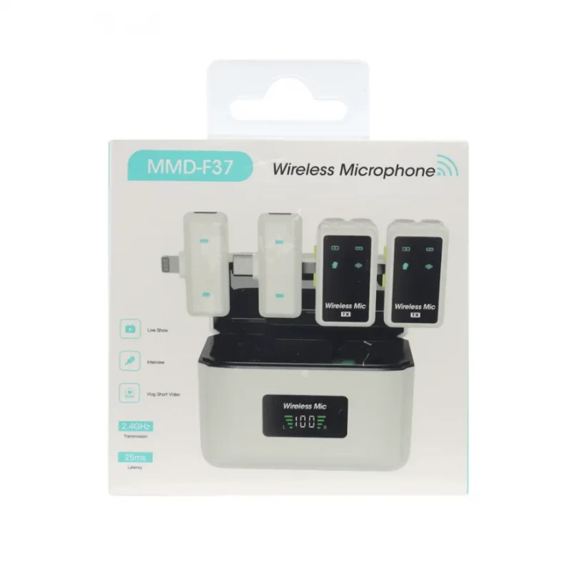 ارتقِ بمستوى تسجيلاتك مع الميكروفون الاحترافي المزدوج MMD‑F37 بتقنية 2.4GHz عالية الأداء. مصمّم خصيصًا لصنّاع المحتوى، المقابلات، الفلوغات، والبث المباشر، ليمنحك صوتًا واضحًا، ثابتًا، واحترافيًا في كل مرة.