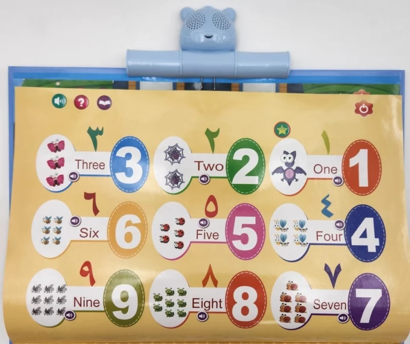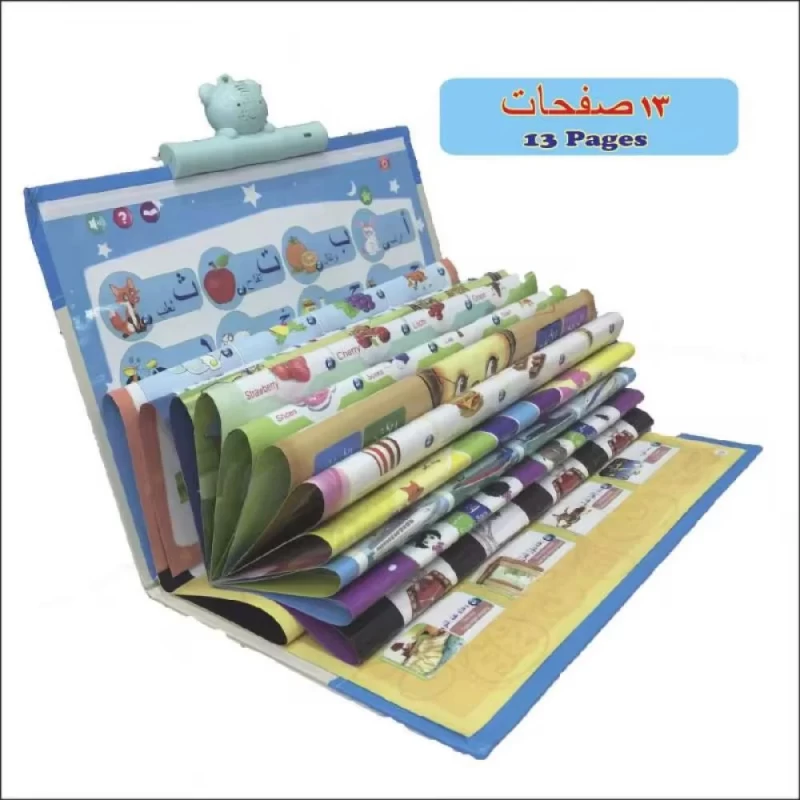 خلي طفلك يتعلّم ويستمتع في نفس الوقت مع كتاب ذكي يجمع بين الصوت، الصورة، اللمس، والتفاعل… تجربة تعليمية متكاملة تنمّي مهاراته من عمر صغير.